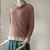 leichter Rollkragen Pullover aus feinster Merinowolle und innen aus reiner Seide, die am Saum und Ausschnitt wolkig herausragt.